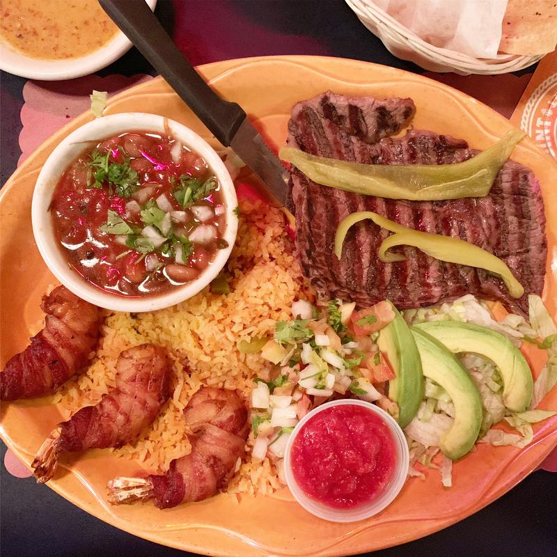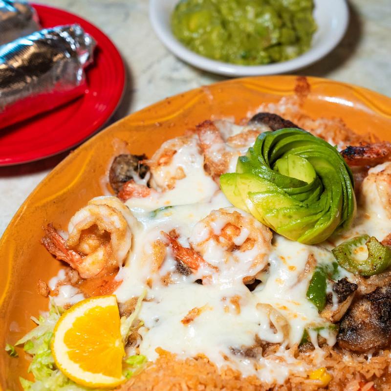 From 8:00 am to 2:00 pm • Fresh Fruit Plate • All brunch entrees are served with rice, beans, & tortillas. Includes three glasses of champagne, orange juice, coffee, or mimosa. Price inside and outside dining area is $26.95