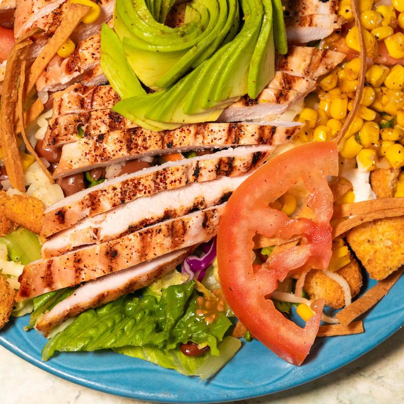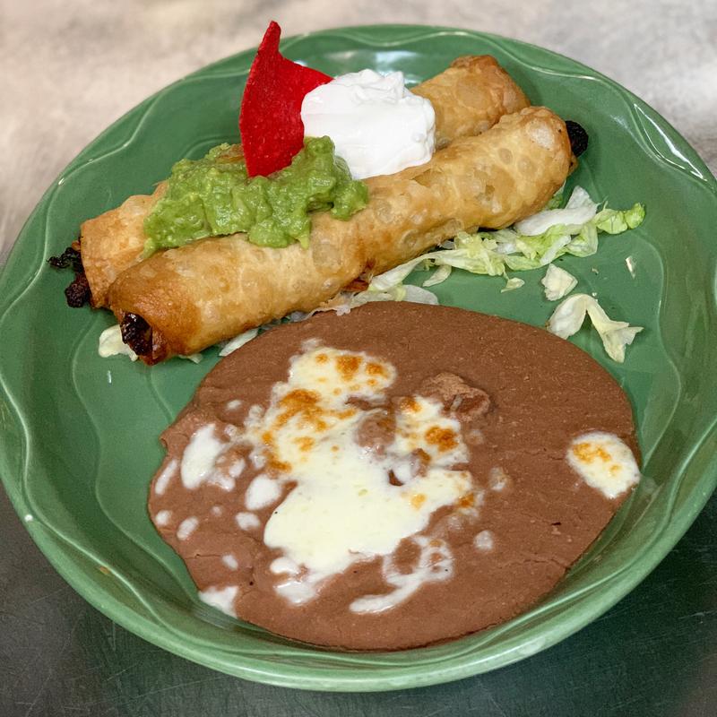 A fried flour tortilla filled with guacamole, sour cream, lettuce & cheese.